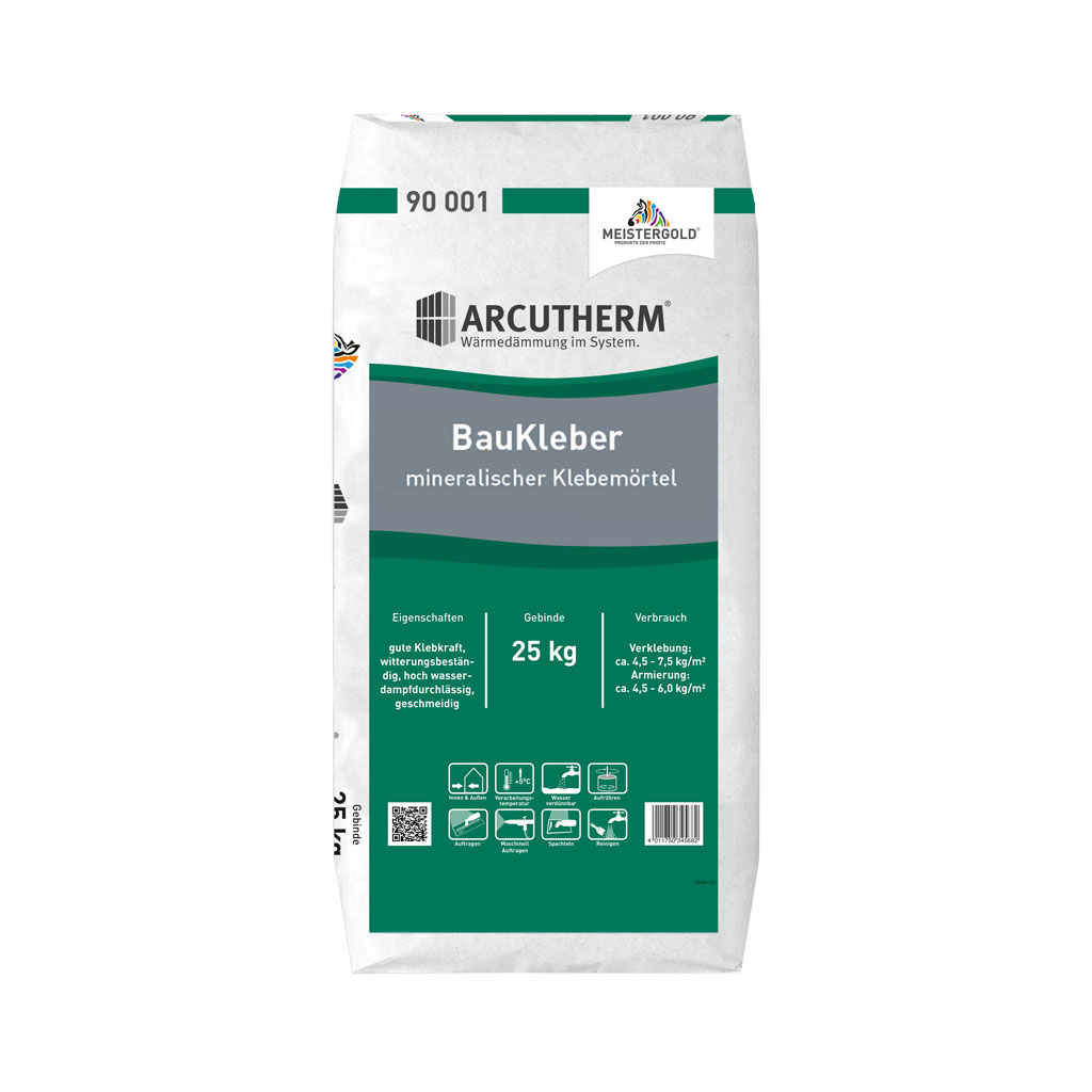 Klebemörtel für Polystyrol- und Mineralfaserdämmplatten in den Arcutherm WDV-Systemen. Mit hoher Anfangsklebekraft. Ideal auch für die Verklebung von Kellerdecken-Dämmplatten.