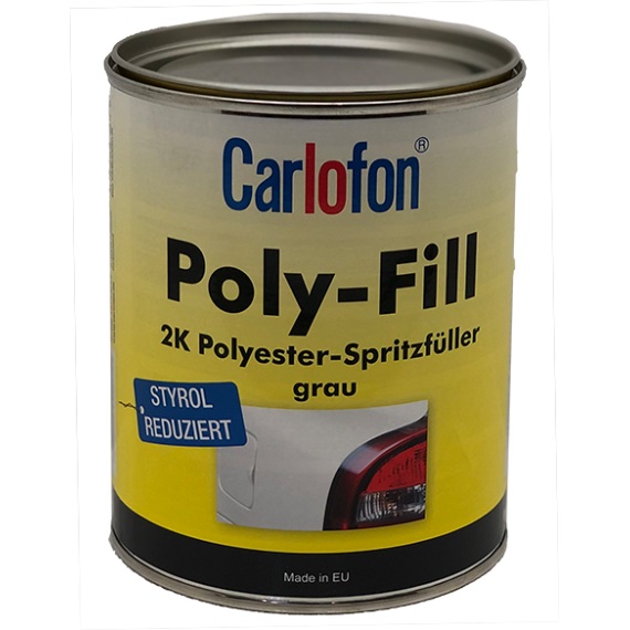 Poly-Fill ist ein 2K-Spritzfüller, der im Kfz- und Maschinenbau eingesetzt wird. Kleine Unebenheiten, Löcher bzw. Poren, wie sie beim Spachteln dickerer Schichten auftreten können, lassen sich schnell und bequem mit dem Spritzfüller ausfüllen bzw. egalisieren.