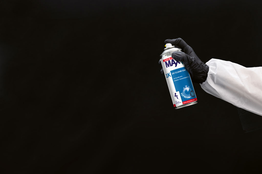 UV-härtendes Klarlackspray auf Acrylbasis für Reparaturlackierungen.