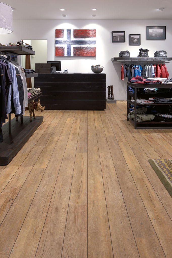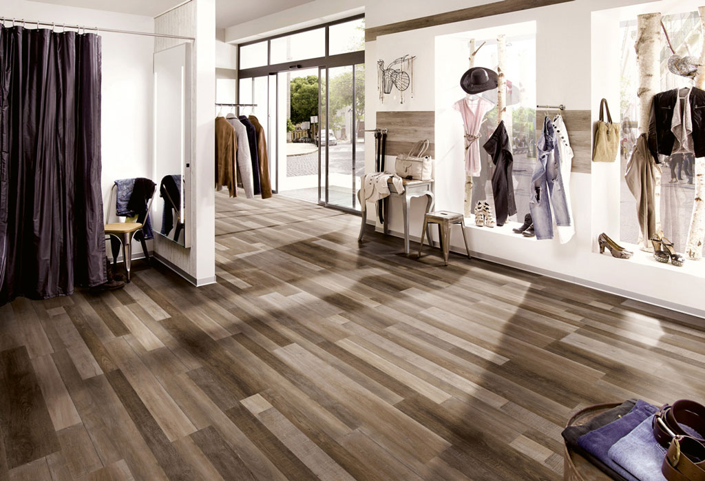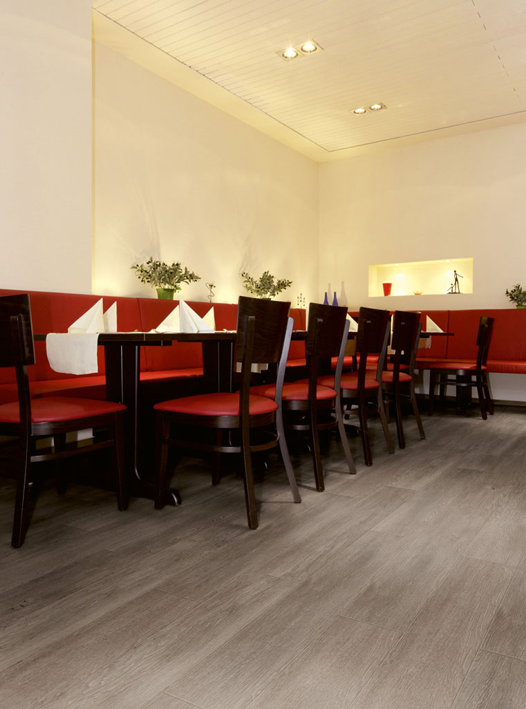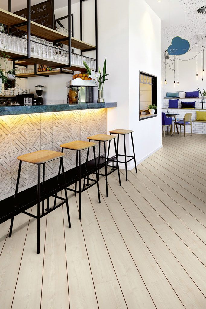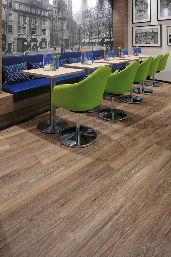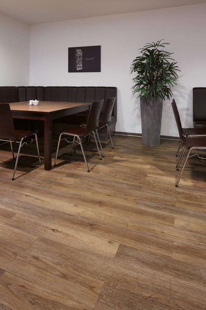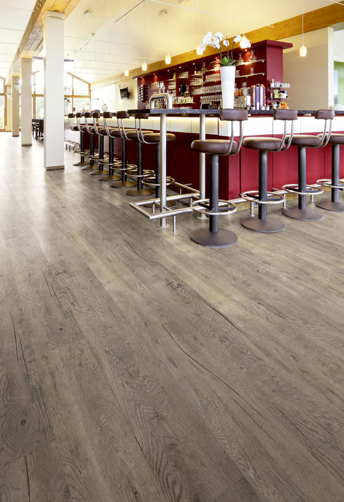 Die Designboden Kollektion floors@work von PROJECT FLOORS ist besonders geeignet für stärker beanspruchte Bereiche wie den Ladenbau, die Hotellerie und Gastronomie, Health Care oder auch Büros. Unser Designbodenbelag kombiniert die authentische Optik von Holz, Stein und Keramik oder Beton mit der Strapazierfähigkeit und Pflegeleichtigkeit eines Kunststoffbelags. Kleinere Planken im Sonderformat ermöglichen Ihnen hochwertige Musterverlegungen wie Fischgrät oder Chevron. Und Groutline schafft einen besonderen Dielen-Look. Wählen Sie bei PROJECT FLOORS aus über 100 authentischen Dekoren!
