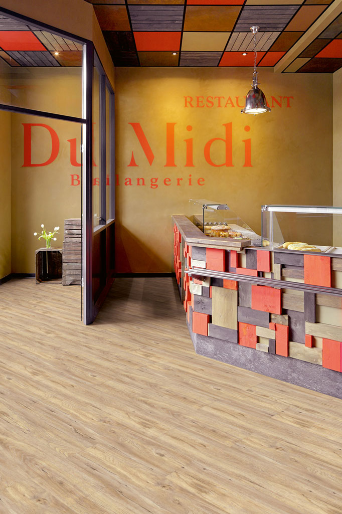 Pflegeleichter Designboden für stärker beanspruchte Bereiche