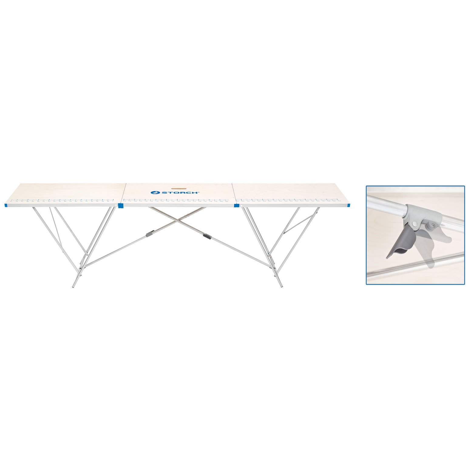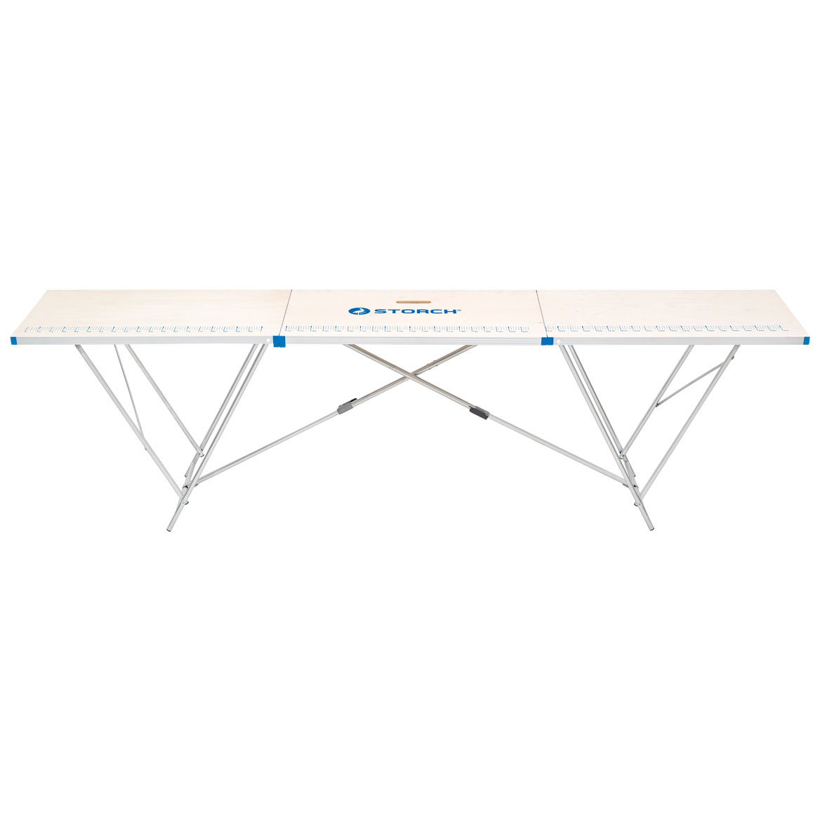 Hochwertiger Alu-Tapeziertisch mit aufgedruckter Zentimeter-Skala.