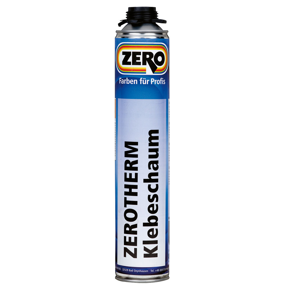 Spezieller. Einkomponentiger. Systemzugelassener Polyurethanschaum mit teilkolabierender Einstellung zum Verkleben von ZEROTHERM Polystyrolplatten K. Grobzellig. Sehr ergiebig. Leicht verarbeitbar. Verbrauch: 4 - 5 m²/Dose.