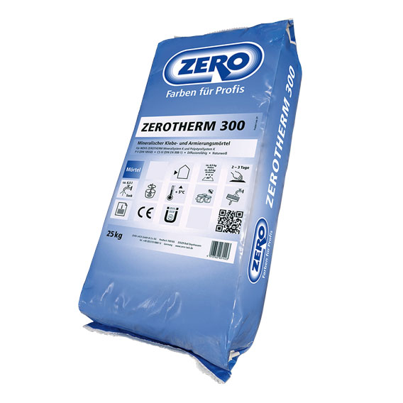 Mineralischer Mörtel (naturweiß) zum Kleben von ZEROTHERM Dämmplatten und zum Einbetten von ZEROTHERM WDVS Gewebe. Für den Einsatz im Sockel- und Spritzwasserbereich geeignet.